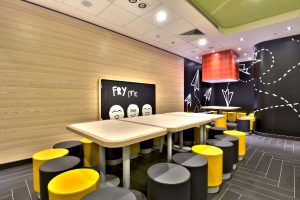 麥當勞以家庭為主題的餐廳經過匠心設計,處處可見設計獨特的圖案及色彩斑斕的元素,玩味十足。部分餐廳更設置軟墊餐椅及圓角餐枱,安全舒適。裝潢明亮活潑的餐廳,讓大小朋友都能享受愉快的親子時光。
